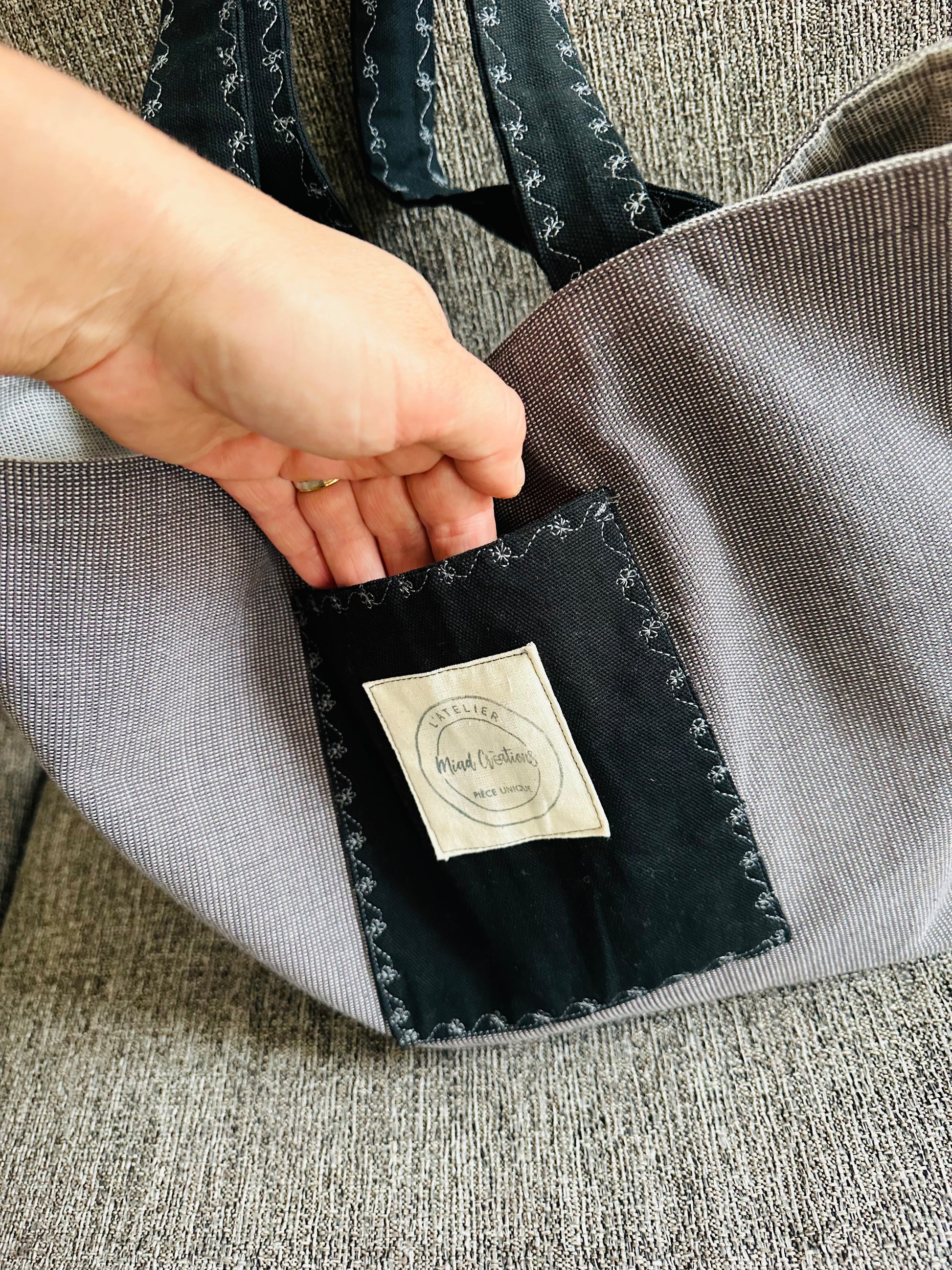 Porté épaule ou à la main. Jolies finitions brodées, doublé à l'intérieur.