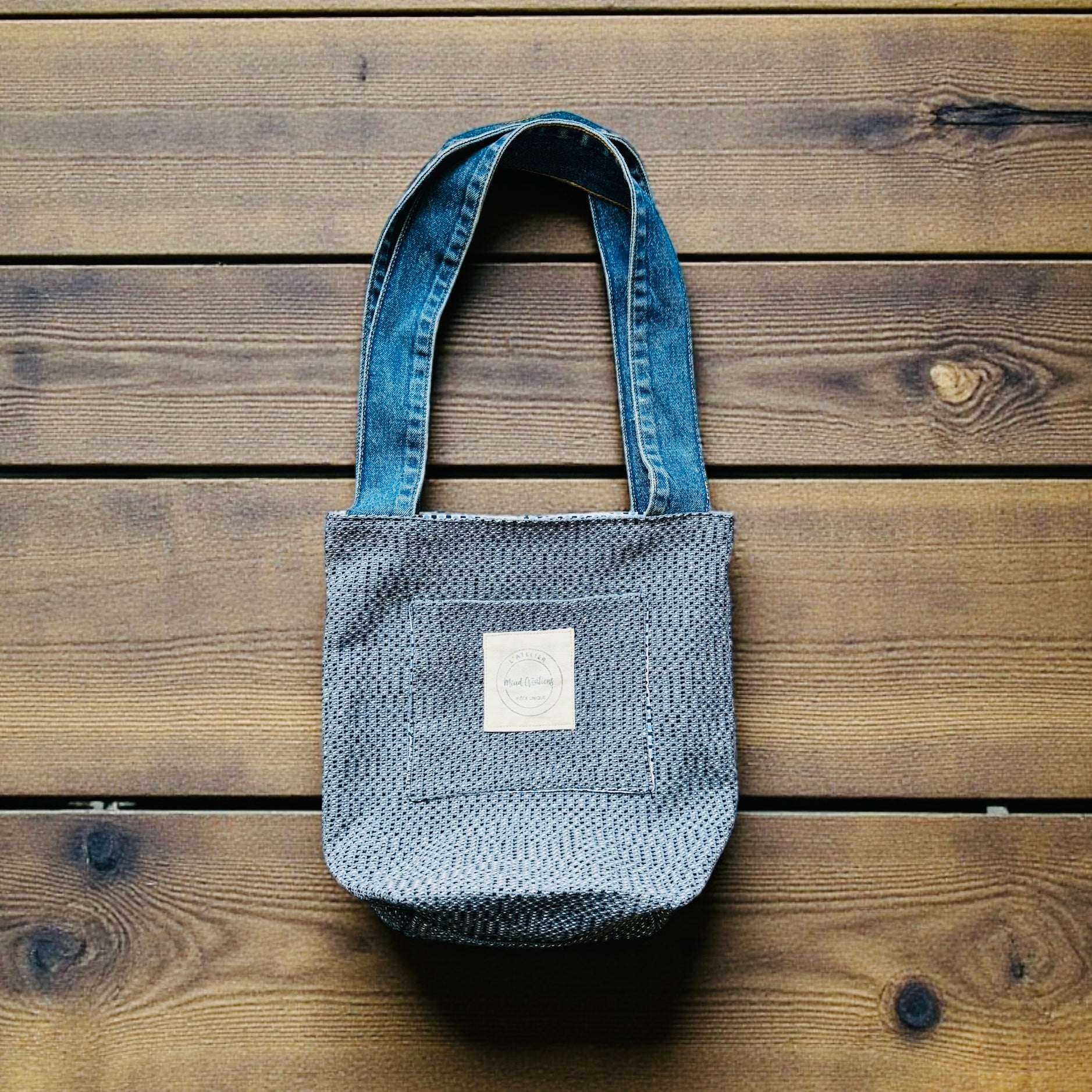 Ce sac fourre-tout aux nuances blue jeans revisite le style tote bag dans une version chic et moderne. Pièce unique de l’Atelier Miad Crēations, il allie caractère et élégance au quotidien.