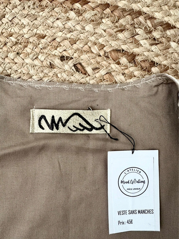 Avec une longueur avant de 56 cm et une longueur arrière de 65 cm, elle est idéale pour la taille 38 ou 40. Fabriquée dans notre atelier Miad Crēations à Lille, elle est unique et de qualité française.